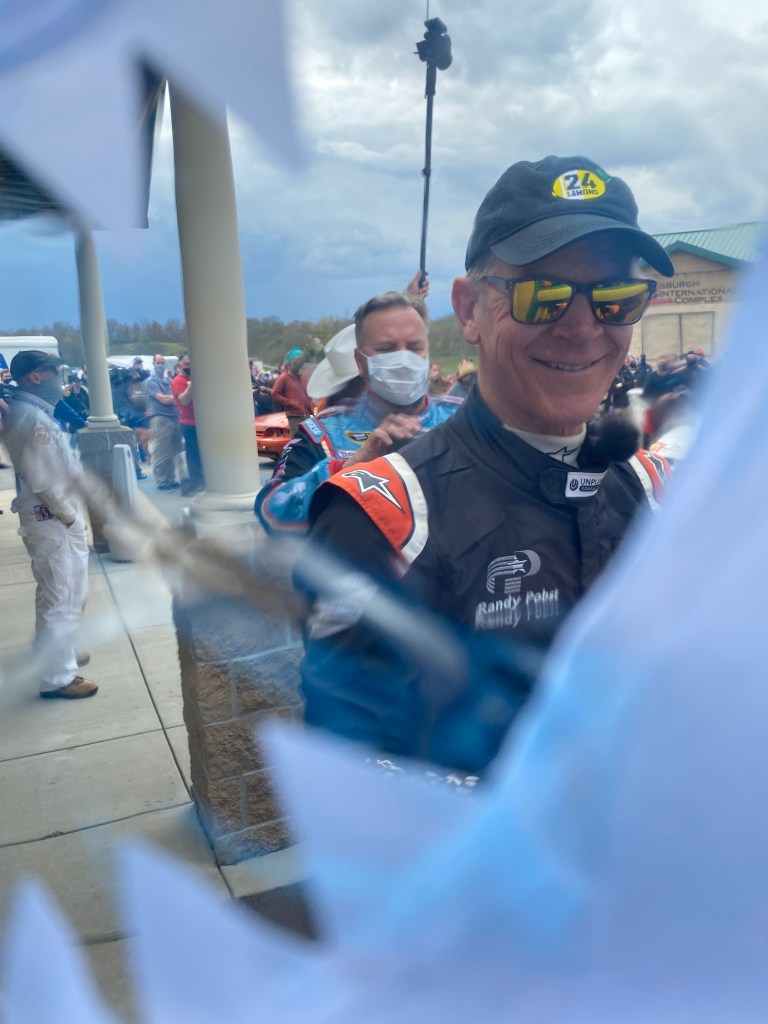 Stephen was fast (2.8 seconds off me), did a lot of work on the car, bought food and drinks, and generally was the ideal teammate. Never mind the fact that this autocrosser (I’m making the X sign and backing away) had no previous racing experience and had never been to PittRace, he had excellent situational awareness, stayed out of trouble, got consistently faster, and played up the theme to a 10. Yes, he was the one that blocked the track exit at the end of the race. PittRace officials didn’t find this funny, Lemons people did.