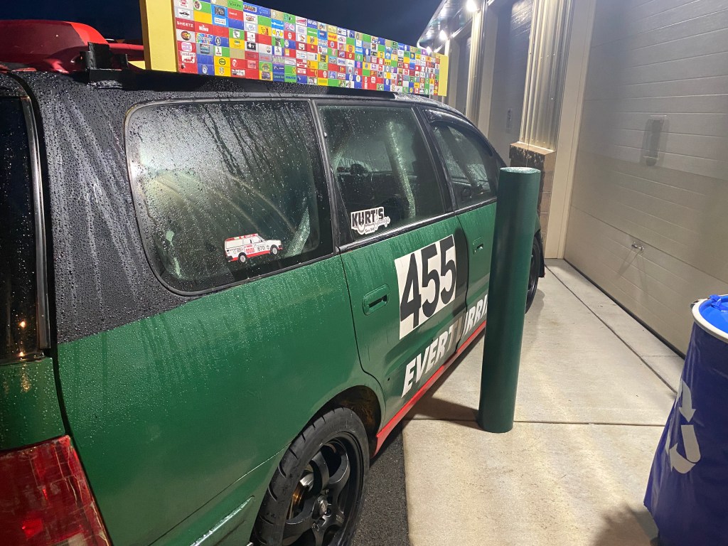 The last time we raced the minivan I begged Tom to allow me to add an airdam and splitter. I did that modification overnight between race days, and so we got to A/B test the modification. It was noticeably better, and so Tom even left it on for street driving after that. Yes, it’s street legal, and he drives it regularly.