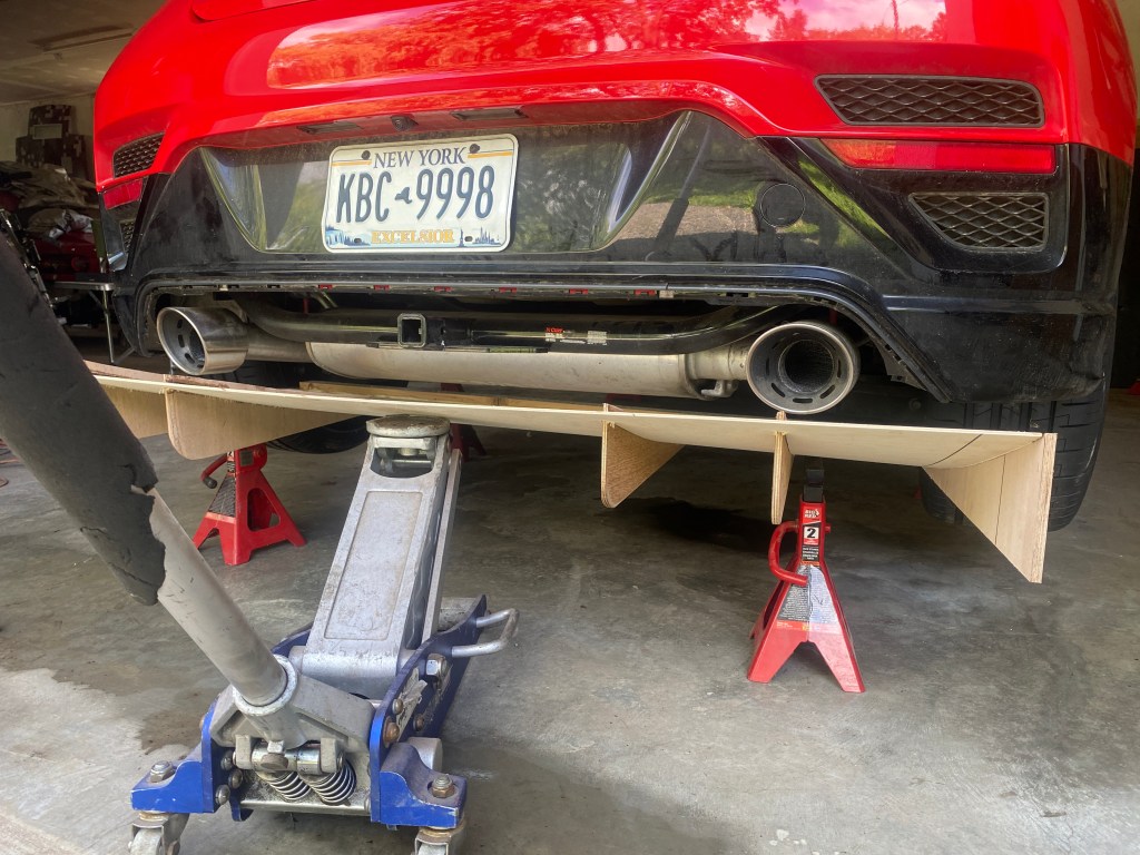 But how effective is a splitter over the OEM undertray? That’s one of the things that I wanted to test out, and so I built a garden-variety splitter. Like 90% of the splitters I’ve seen, it’s dead flat, with sharp edges and no optimization. Kinda like your splitter.