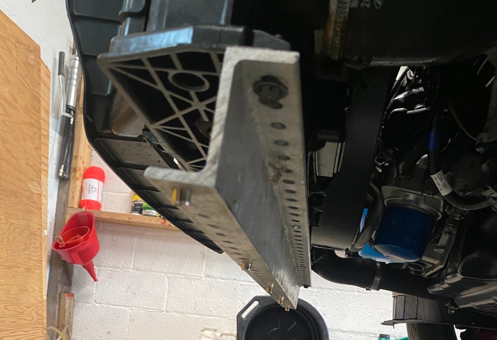 If I was building another dual-duty splitter, I wouldn’t use the z-plate, it restricts the vertical height adjustment. Instead I’d bolt a piano hinge to the undertray. This would allow a full range of motion from stock height to resting on the floor. I’d make the splitter slightly thicker so I could use two splitter rods instead of three, and then it would be easier to adjust the height.