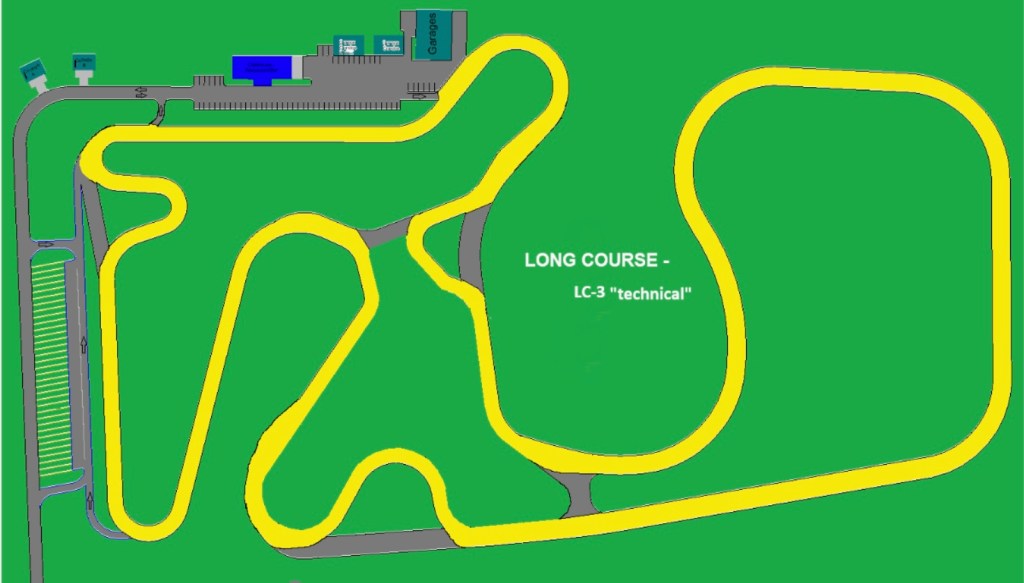 This course bypasses T4 and the S-trap, but keeps the uphill esses. Compared to the original layout, it’s a lot faster, but also removes the two most technical corners. This is a fun layout, just the same.