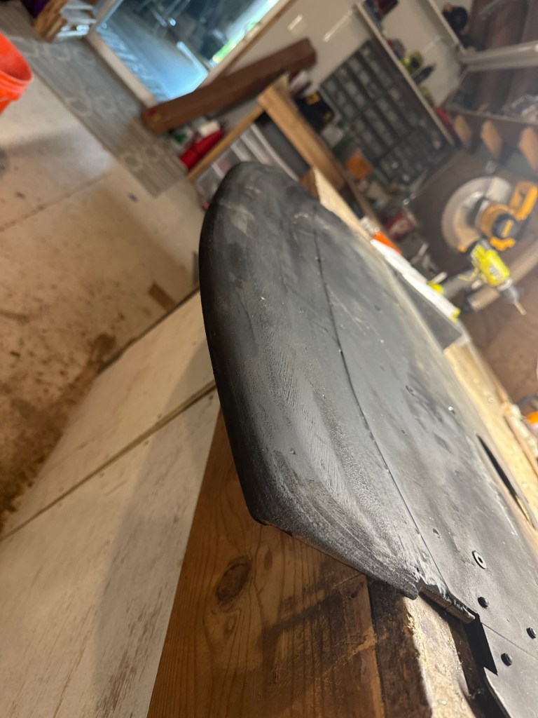 It’s easy to add extra thickness to a splitter and round it over, and with that you get better flow attachment. I don’t know why I don’t see more people doing this. Also worth noting, the big roundover made the splitter about a pound lighter!