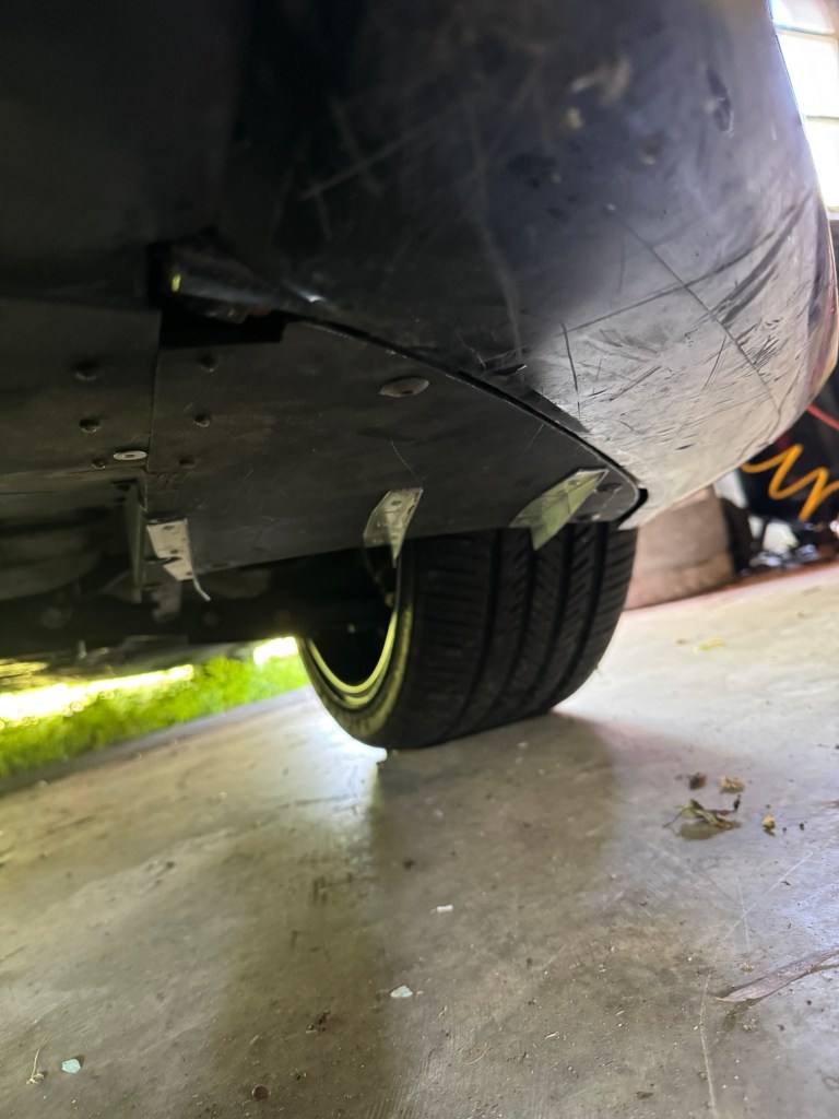 The splitter fits in between the undertray and the middle fascia. There’s quite a gap here, and so I tripled the thickness of the leading edge to 3/4”.