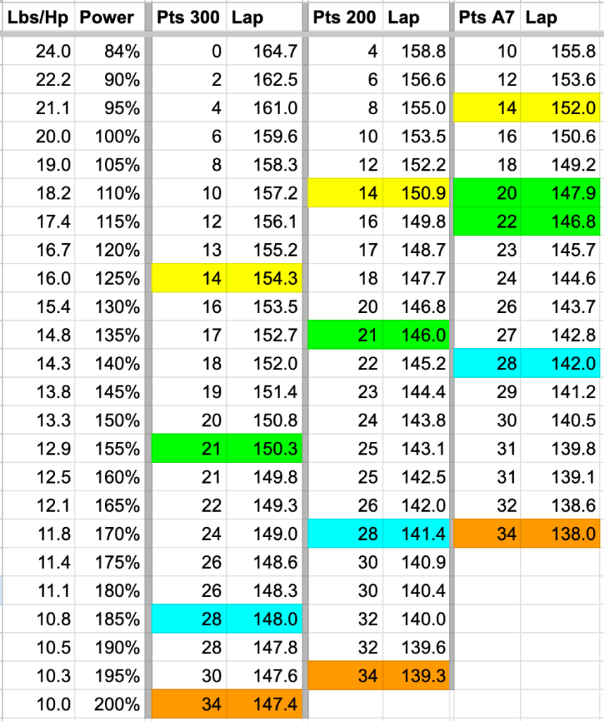 However, as a testing venue, WGI is only so-so because it’s a popular track, and so there might be 40+ cars in your run group. It’s not just the traffic that’s the problem, but highly variable weather, and virtually no runoff. So it’s not uncommon to lose a session due to rain, fog, or because someone hits a wall. For this reason, I may need to use sector times and predicted laps in order to get good data.