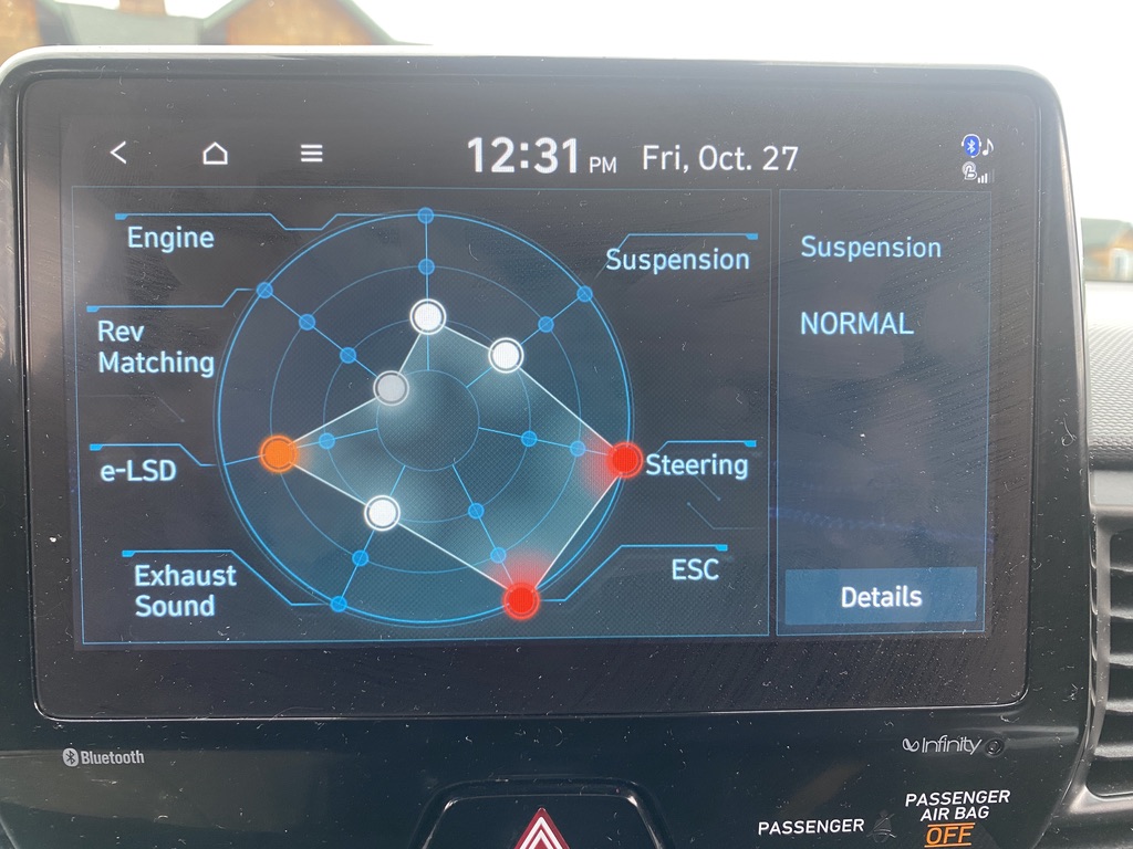 The OE wing does a good job of stabilizing the rear of the car, and I felt none of the rear instability issues I felt when testing the car with the base model roof extension (meaning no wing). That was a test I ran at NYST, and the rear lift made the car twitchy under braking going into T1 and T5. But at WGI where I was 30 mph faster, the N wing felt stable under braking, and so the OE wing is definitely an improvement on the base model’s featureless roof extension.